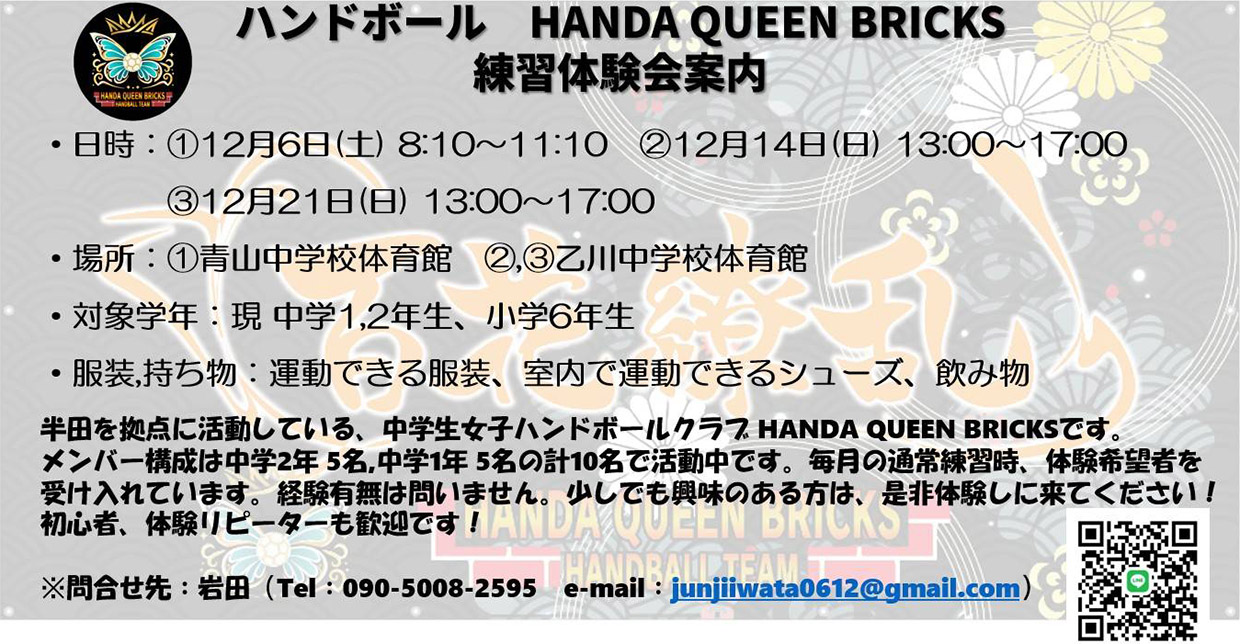 ハンドボールの経験有無、出身地域問わず、一緒にハンドボールをしてくれる仲間を募集中!体験リピーターも歓迎です!